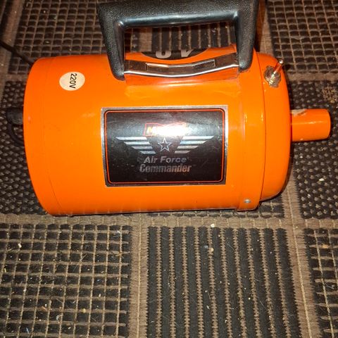 Metro Air Force Commander 4.0- kuivain eläimen turkin kuivaukseen. Kaksi eri tehoa. Mukaan vaihtopäät. Letkussa on ihan pieni reikä, mutta ei haittaa käyttöä. Laitettu teippi päälle.