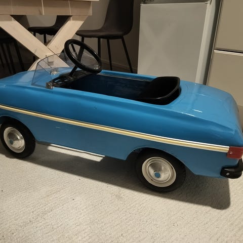 Kohtalaisessa kunnossa oleva polkuauto, ollut vuosia lämpimässä varastossa, toimivuutta ei ole nyt testattu.