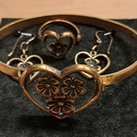 Pronssi korusetti, rannekoru, kaulakoru, sormus ja korvakorut. (Varattu)