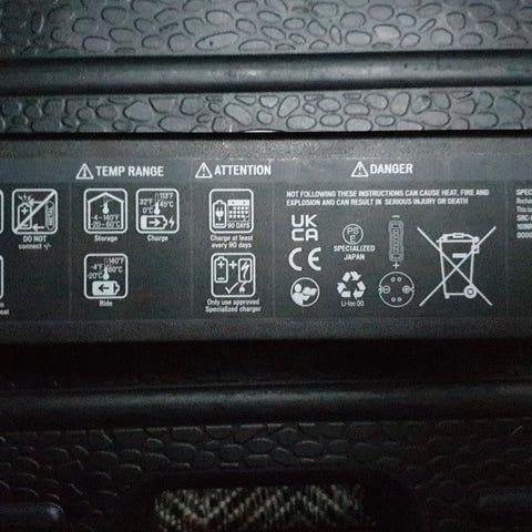 Specialized SBC-B20 ladattava litiumakku, kapasiteetti 19,2Ah, teho 710Wh, jännite 36,9V.