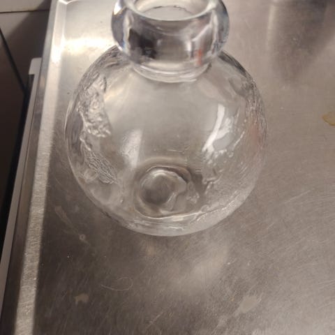 Erkkitapio Siirosen Riihimäen Lasille suunnittelema Tellus koristepullo. Tunnetaan myös nimellä Maapallopullo. SNLL-tarra kyljessä kuvaa Suomen Naisten Liikuntaliittoa. Korkeus 16 cm