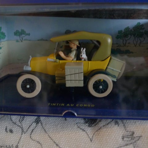 Tintin Au Congo pienoismalli auto, väriltään keltainen ja vihreä. Pienoismalli on esillä läpinäkyvässä kotelossa, joka suojaa sitä pölyltä ja vaurioilta.Nouto tai postitus.Käteinen tai mobilepay.