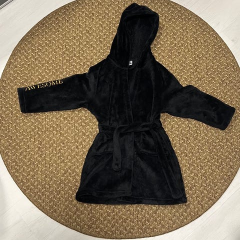 2 kpl yksisarvinen teeman aamutakit, kuviot kullan hohtoiset, koot 110/116 ja 122/128, pehmeä materiaali. Hinta/kpl.