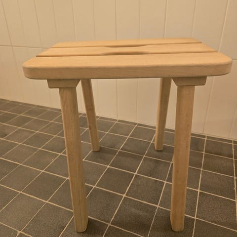 Massiivipuinen jakkara. Koivu/tammi. Korkeuden säätö pyörittämällä. Käyttämätön.