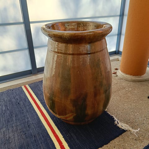 Vanha koristeena ollut lasitettu saviruukku,korkeus 60cm,painava.