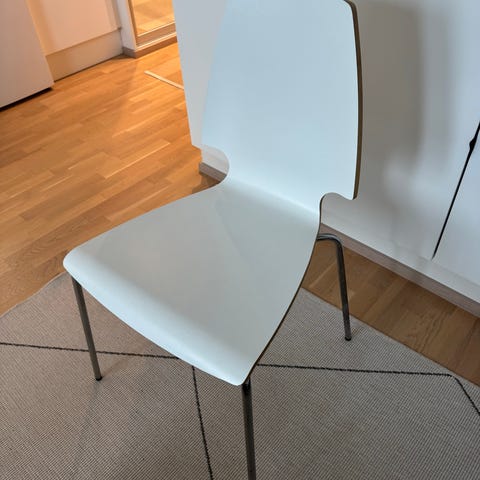 IKEA-tuolipaketti, sisältää kuusi valkoista tuolia viivakuviolla. Jalat ovat metallia. Tuolit ovat pinottavia ja erinomaisessa kunnossa. Istuinkorkeus noin 47 cm. Malli on poistunut IKEA:n valikoimasta. Kaikki 6 tuolia vain 100 €. Kuljetus onnistuu tarvittaessa lähialueille korvausta vastaan :)