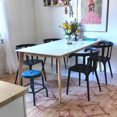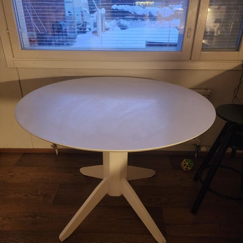 Pirtinpöytä - henkinen valkoinen ruokapöytä. Pientä käytön jälkeä on, kuvissa näkyy. Kuitenkin päällisin puolin siisti ja erittäin tukeva.