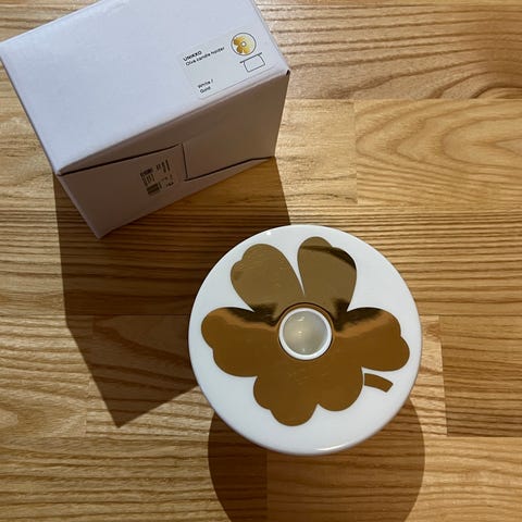 Kruunukynttilälle sopiva, metallisen pidikkeen halkaisija 2,2 cm.