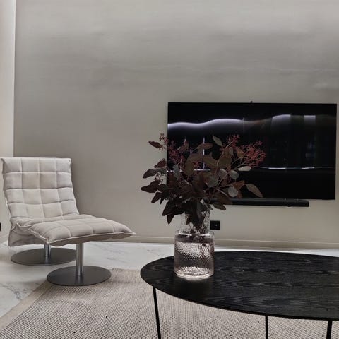 The Frame on suunniteltu seinälle – se istuu tiiviisti seinää vasten ja näyttää taululta silloin, kun TV ei ole käytössä. Art Moden saa pois halutessaan