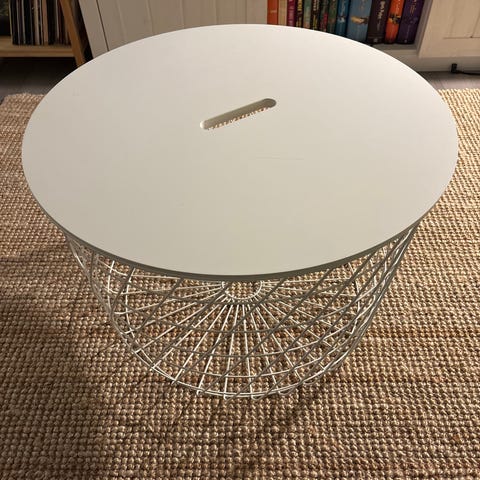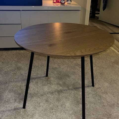 Myydään elämää nähnyt Jyskin sohvapöytä, pinnassa jälkiä jotka saanee hiomalla ja lakkaamalla pois.