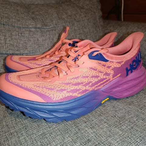 Speedgoat 6 versio on uusittu sekä pohjan että päällisen osalta. Välipohjan materiaali on kevyempi ja kimmoisampi kuin edeltävissä versioissa. Päällis materiaali on istuvampi ja varpaille tekee tilaa venyvä päällispala. kanta 38mm /päkiä 33mm Drop: 5 mm Paino naiset 256g (koko us8) Gore-tex Invisible Fit vedenpitävä kalvo uusittu pintamateriaali, myös iltin kiinnitys uusittu ja istuvuutta parannettu Välipohja materiaali on kimmoisa ja juoksutuntumaltaan herkempi kuin Varvasosan istuvuutta parannettu ja tilavuutta lisätty. Meta-Rocker Geometry = Parantaa rullausta kannalta päkiälle, parantaa juoksun taloudellisuutta 5mm kuviolla varustettu Vibram MegaGrip pohja. Droppi (mm): 5-6. Harjoitusalusta: Maasto. Lesti: Normaali. Tuki: Neutraali. Vaimennus: Parempi.