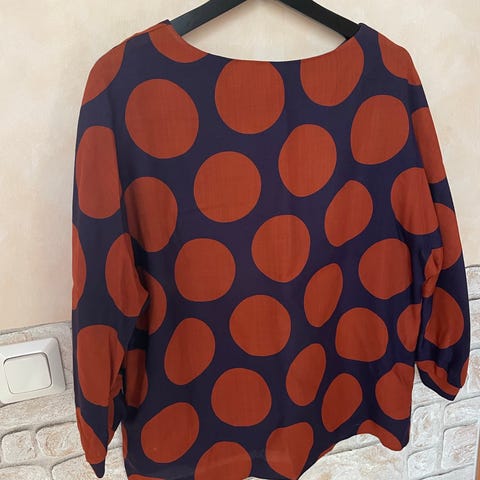 Marimekko Pusero naisten pusero, koko L. Valmistettu kankaasta, väriltään kirjava. Soveltuu arkikäyttöön ja erilaisiin asukokonaisuuksiin.