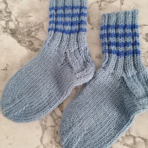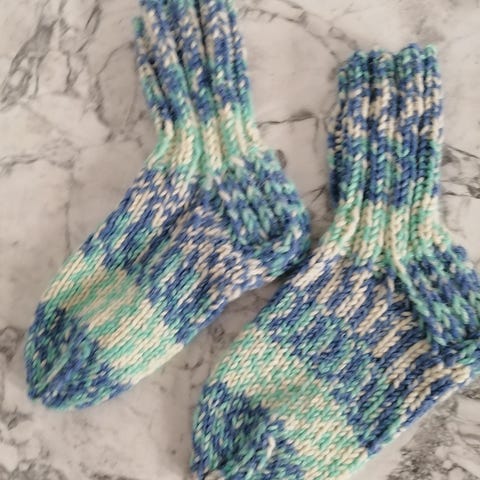 Uudet itse neulotut lasten villasukat Seitsemän veljestä langasta. Kengän koko 22.