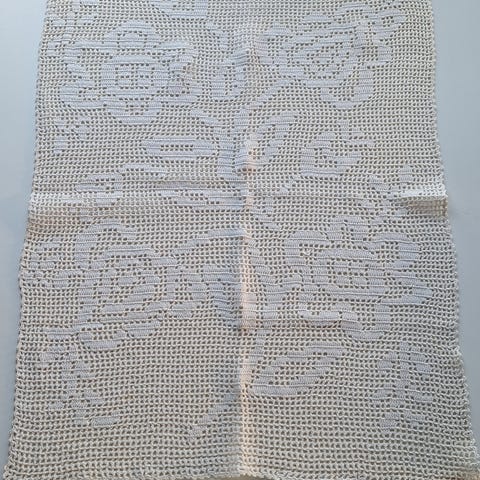 Punainen, käsin virkattu kaitaliina, laadukkaasta langasta