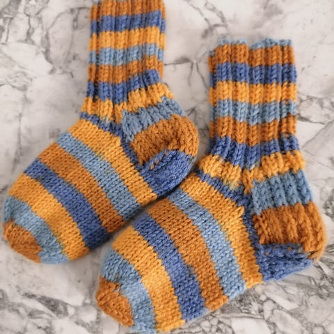 Uudet itse neulotut lasten villasukat Seitsemän veljestä langasta. Kengän koko 22.