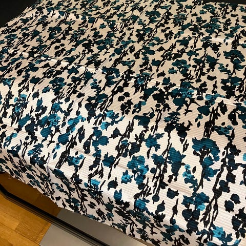 Ihanaa kangasta. Materiaalista en ole varma. Koko laskettu yksittäisestä alueesta, koska toisesta reunasta puuttuu pala. 62 x 130. Tästä saa vaikka kivan sisustustyynyn tai pussukoita.