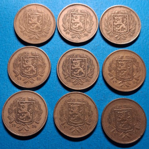 5 markan kolikot alpr vuosilta : 1930 - 1951