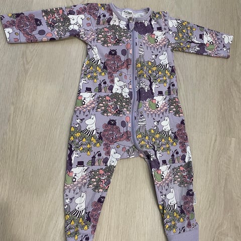 Vauvan ihana muumiyöhaalari. Koko 80. Vetoketju molempiin suuntiin, mikä helpottaa vaipanvaihtoa.