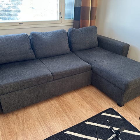 Pohjasta ilmeisesti lauta katkennut(?) sillä istahtaessa sohva narahtaa, mutta ei oo meillä käyttöä haitannut.