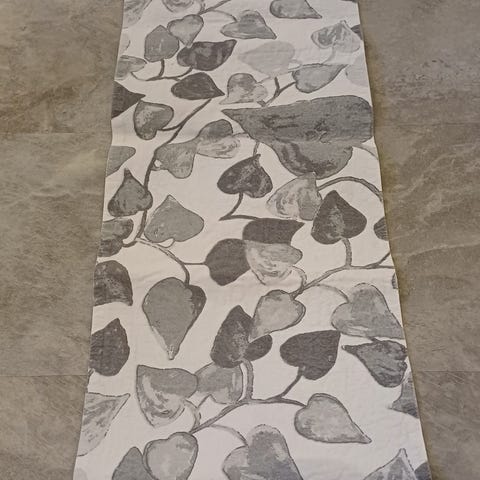 Hyvä vaaleanbeessi/valkoinen kaitaliina kohokuviollinen. P 83 L 35cm.