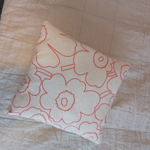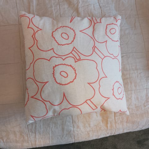 Marimekko koristetyyny persikka/lohenpunainen. Tyyny on topattu. Tyynyssä on vetoketju ja se on valmistettu kestävästä materiaalista. Sopii sisustukseen ja tarjoaa mukavuutta.