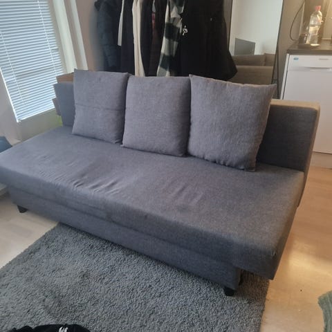 Erityisen hyvä ja laadukas sohva tämä ei ole mutta pysynyt toistaiseksi ehjänä ja melko siistinä, ei tahroja. Helppo levittää vuoteeksi.