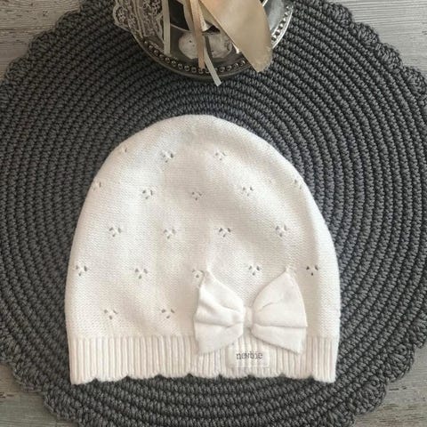 Newbie: Valkoinen hattu kokoa 48/50 (9-24 m). Erittäin hyväkuntoinen.