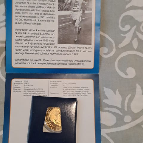 Suomen Monetan ja Urheilijayhdistyksen toteuttama pronssinen , 24 k-kultaus, paino 25 g