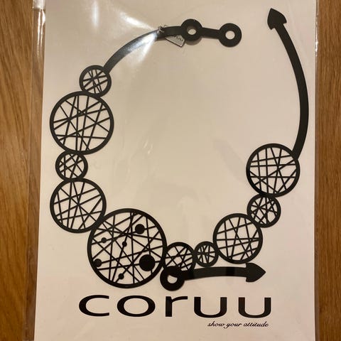 Käyttämätön silikoninen Coruu kaulakoru. Pituus n. 54 cm, mikä on säädettävissä. Materiaalina on silikoni 1,5 mm:n paksuinen. Pesu käsin saippualla.