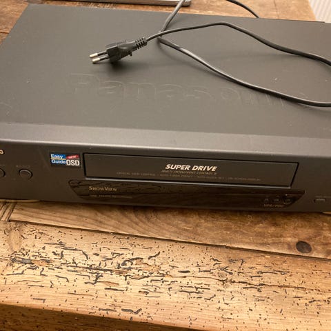 Panasonic Super Drive VHS-nauhuri mustassa värissä. Laite sisältää kaukosäätimen ja liitäntäkaapelin. Sopii VHS-nauhojen toistoon ja tallennukseen.