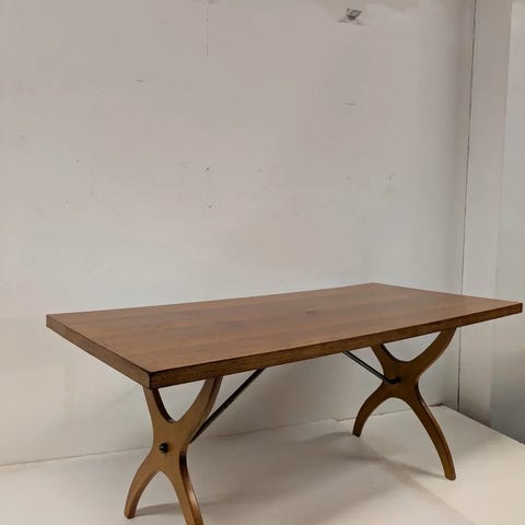 Tyylikäs 60-luvun tiikki olohuoneenpöytä myytävänä. Jalat vaihdettu aikanaan. Kannessa kuvan mukaista jälkeä. Runko ehjä.