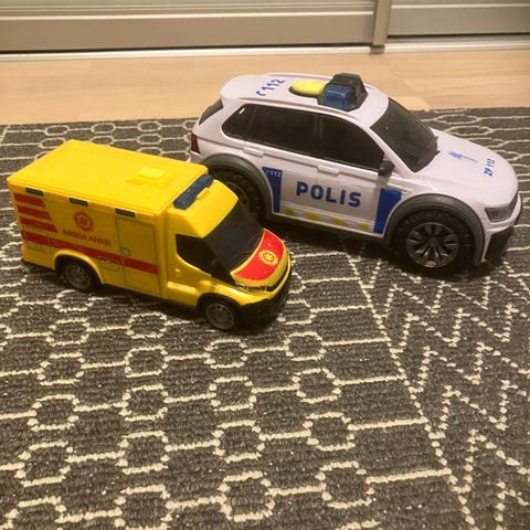 Myydään kuvanmukaiset, hyväkuntoiset lelut seuraavalle leikkijälle. Helikopterin ja poliisiauton äänet ja valot toimii normaalisti.