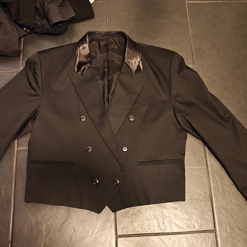 I'm selling a men's suit jacket that is a shiny grey color and in size XXL,. The blazer can be picked up in 02230 Matinkylä, just 5 minutes away from the Iso Omena shopping center.