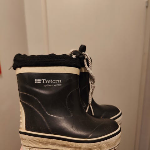 Meille uutena ostetut ja ehkä muutaman kerran jalassa olleet kumpparit. Yleisilme siisti, hieman pinnallista jälkeä ja sisäpuolella ylävuoressa hieman tummumaa.