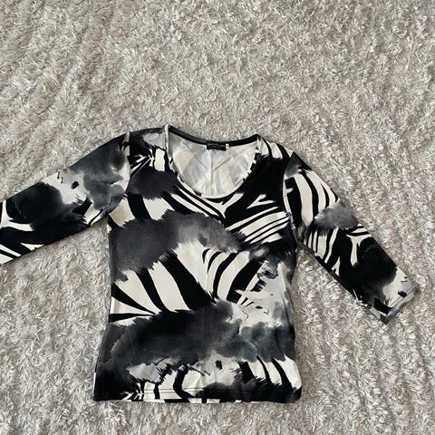Joustavaa kangasta kuviollinen T-paita pidemmällä helmalla.