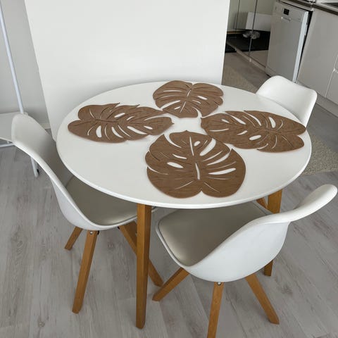 Valkoinen,tukeva runkoinen ruokapöytä neljällä saman sarjan tuolilla. Käytön jälkiä jonkun verran mutta vielä hyvässä kunnossa.Taloudessa koira.