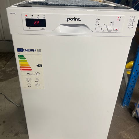 Valkoinen 45 cm leveä Point-astianpesukone kolmella pesutasolla ja monipuolisilla pesuohjelmilla