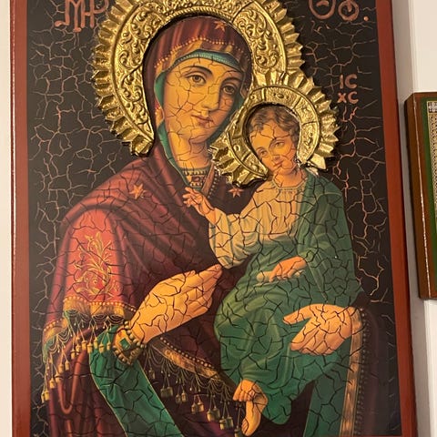 Pieni puinen ikoni, Musta Madonna, koko noin 9,8 x 12.5 cm. Hyväkuntoinen.