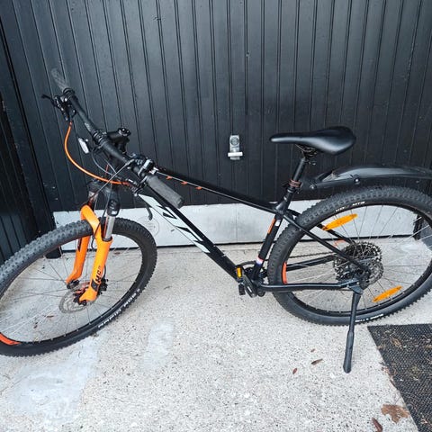Malli KTM Ultra Flite. Levyjarrut, muovilokarit, seisontatuki, 29 tuuman rengaskoko. Vaihteet 2x10. Rungon koko S, sopii parhaiten n 160-170 cm pitkälle ajajalle.