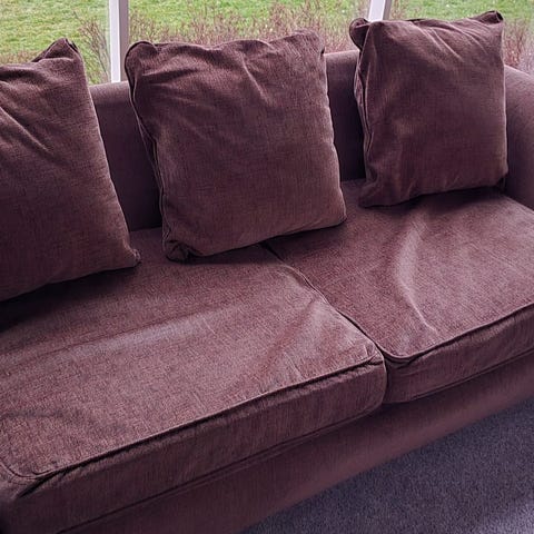 Käytettynä ostettu ruskea, todella mukava sohva!