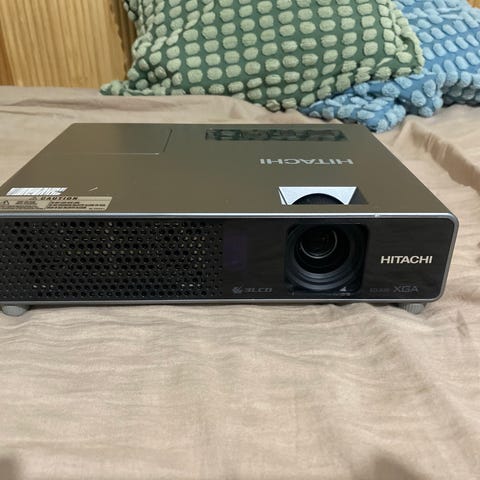 Hitachin lyhyen etäisyyden projektori, jossa toimiva lamppu. Mukaan tulee myös virtapiuha. Ei kaukosäädintä.
