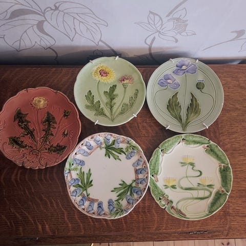 Myynnissä muita pienempiä majolika lautasia.