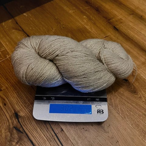 Jalovillan pässiä 114g. Ei vyötettä jäljellä ni en sävyä enää muista. Sukkalanka joka käy muihinki neulomuksiin.