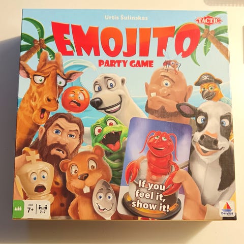 Tactic Emojito lautapeli. Pelissä on erilaisia peliosia ja kortteja, ja se sopii 7-vuotiaille ja sitä vanhemmille pelaajille. Pelin tarkoituksena on ilmaista tunteita ja reaktioita pelin hahmojen avulla.