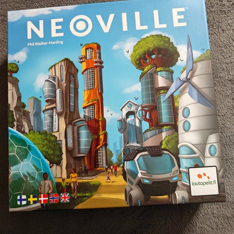 Blue Orange Cloud City lautapeli sisältää pelilaudan, pelinappulat ja ohjeet. Peli on tarkoitettu useammalle pelaajalle ja tarjoaa strategista lautapelikokemusta.