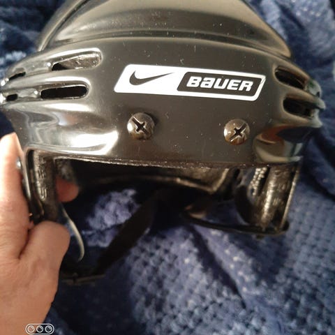 Myydään hyväkuntoinen valkoinen Bauerin jääkiekkokypärä ristikolla. M koko