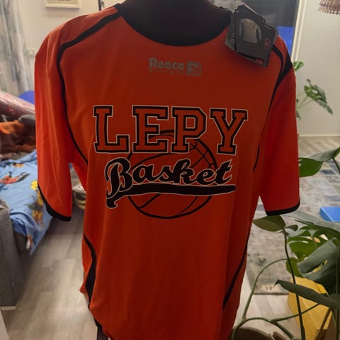 koko L. Musta paita, valmistettu 100 % polyesteristä.