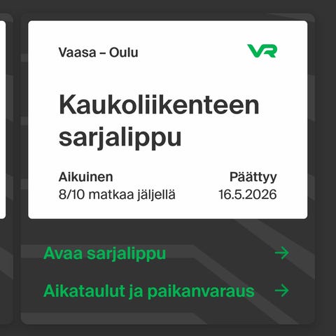 Vaasa-Tervajoki junasarjaliput