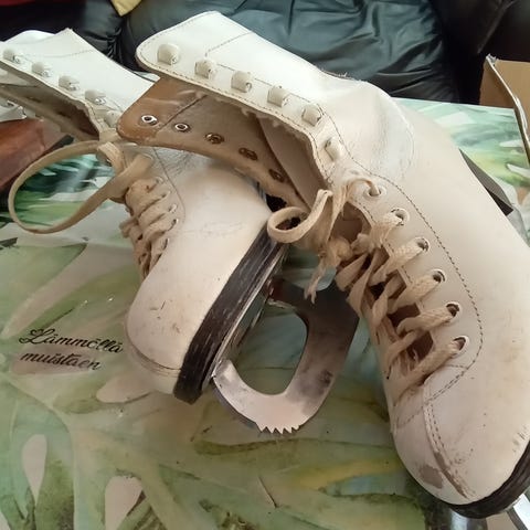 Naisten kaunoluistimet koko 37 carnival. Luistimet ovat hyvässä kunnossa joissa mukana terän suojukset nauhat ovat ehjät.