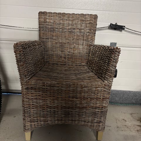 Kaksi rottinkituoli, vaatii uudelleen maalausta, muuten ehyet.